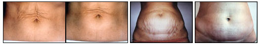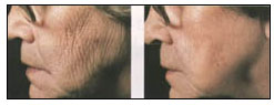 - Sagging face contours, wrinkled, sun-damaged skin (atrophy, elastosis)