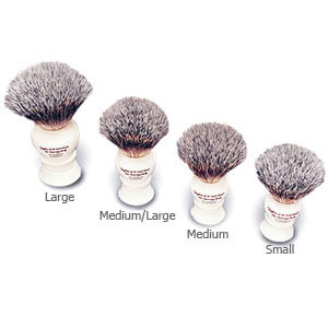 The Silvertip Badger faux-ivory brush has very fine silver hair and lathers creamer than any other shaving brush.